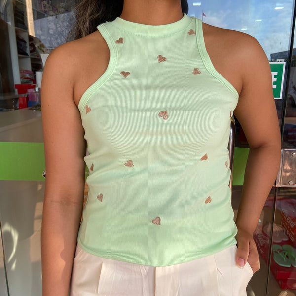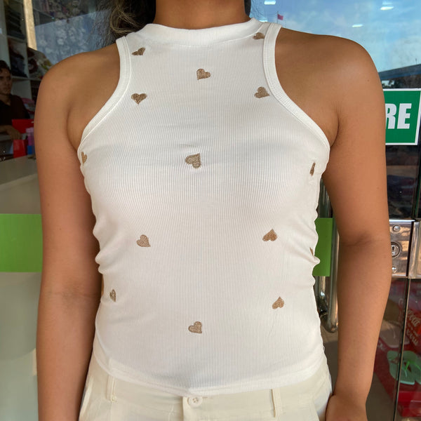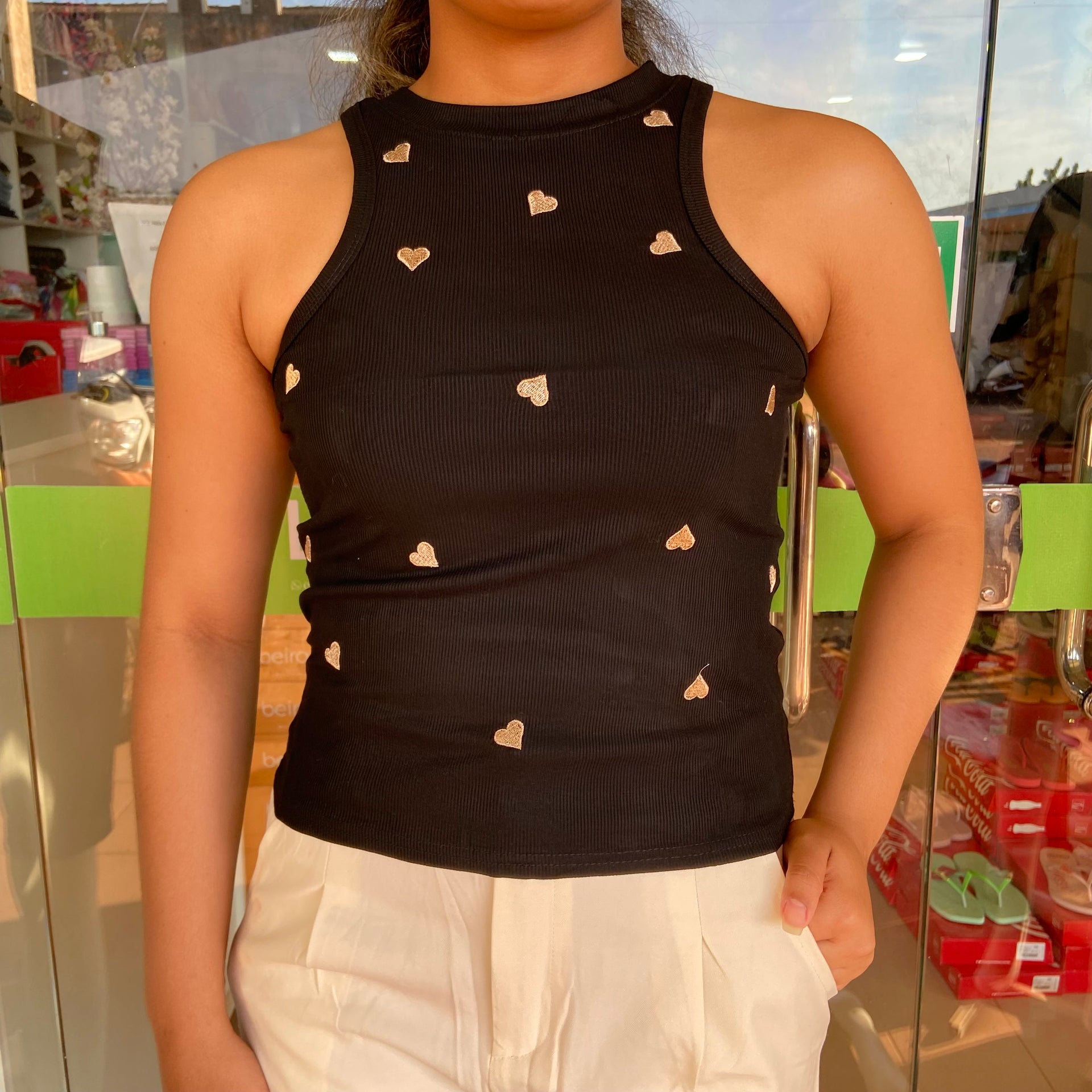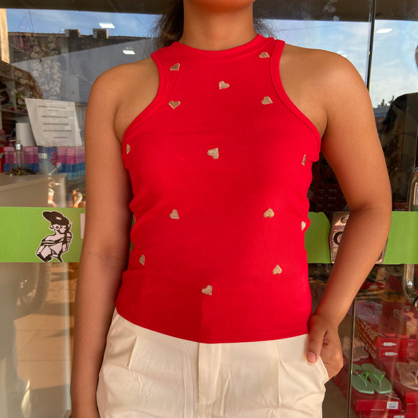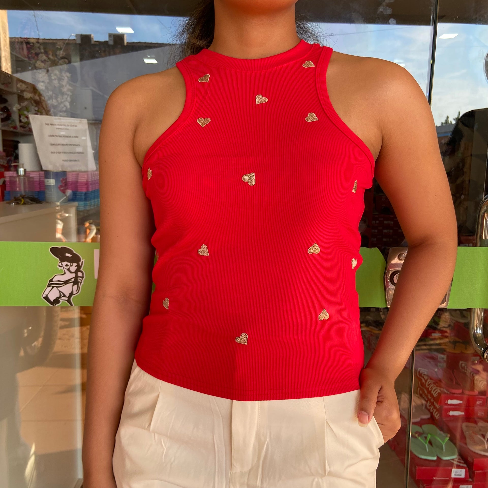 O detalhe especial fica por conta dos pequenos corações em acabamento metalizado (dourado), que são distribuídos pela peça, adicionando um toque de delicadeza e alegria.