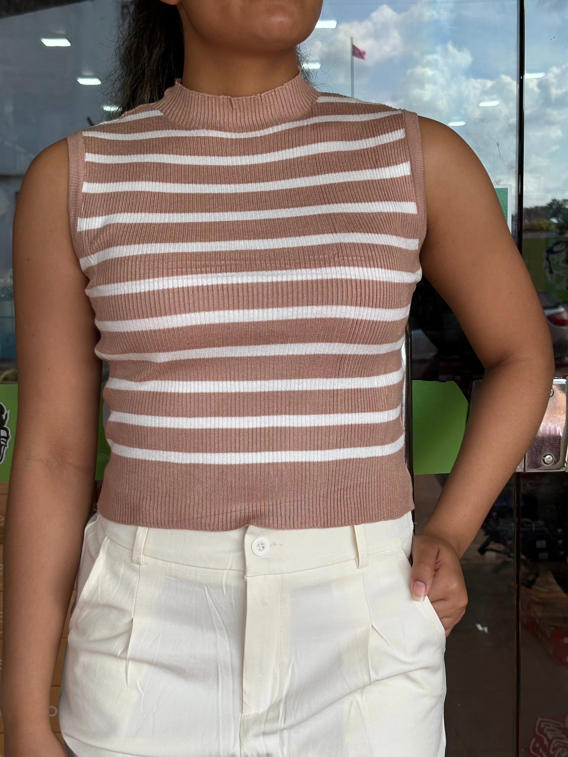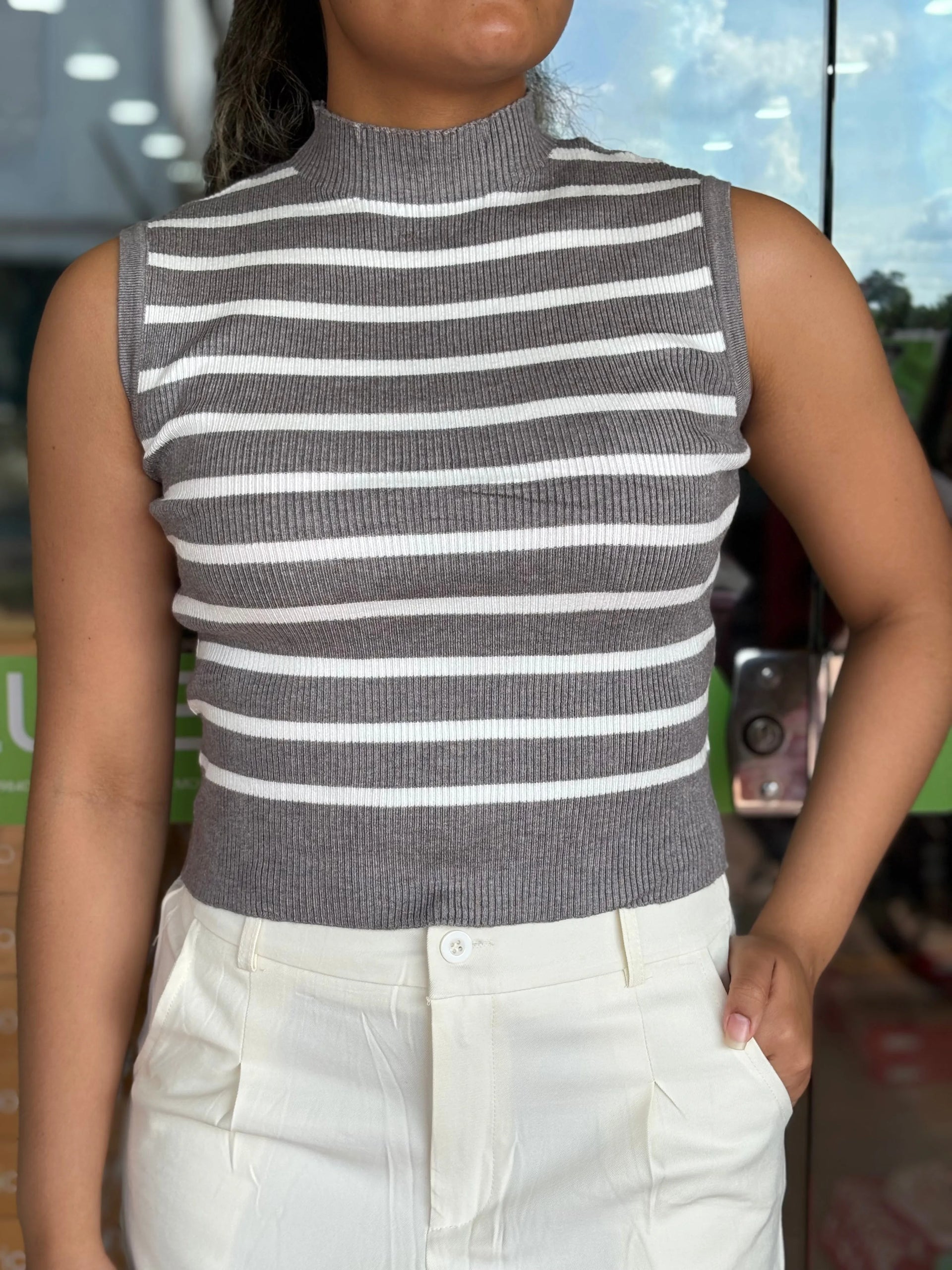 Adicione um toque fashion e aconchegante ao seu look com a nossa Blusa Regata em Tricô Canelado.